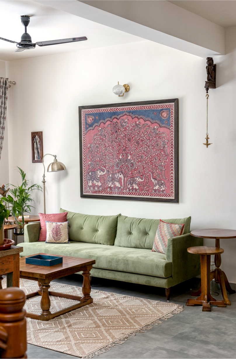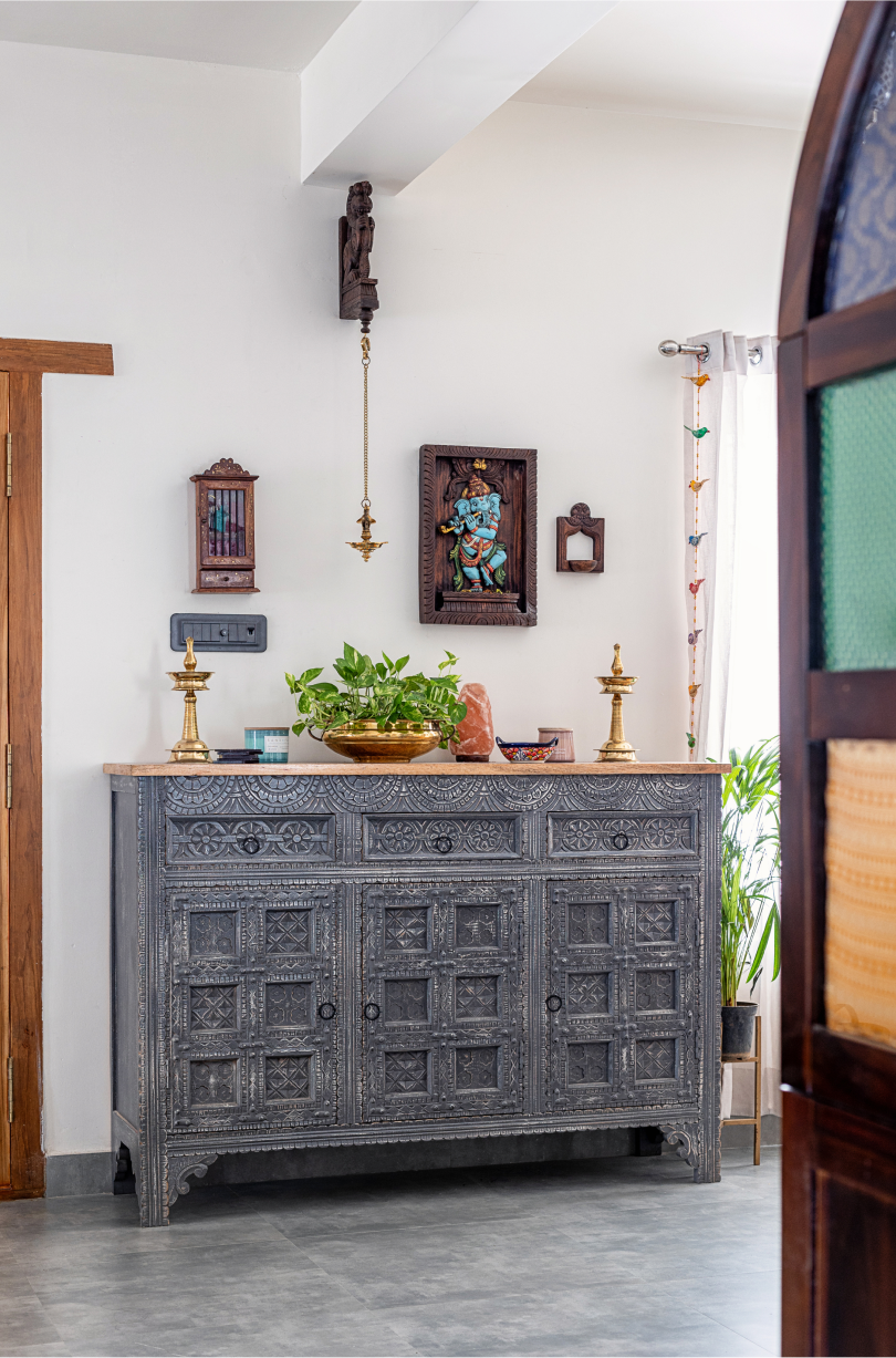 Tucked away in the tranquil lanes of Kotturpuram, the “House of Arts” is a 3BHK villa that has undergone a stunning interior transformation. The renovation brings together a curated collection of traditional and contemporary design elements, creating a space that is both inviting and inspiring.